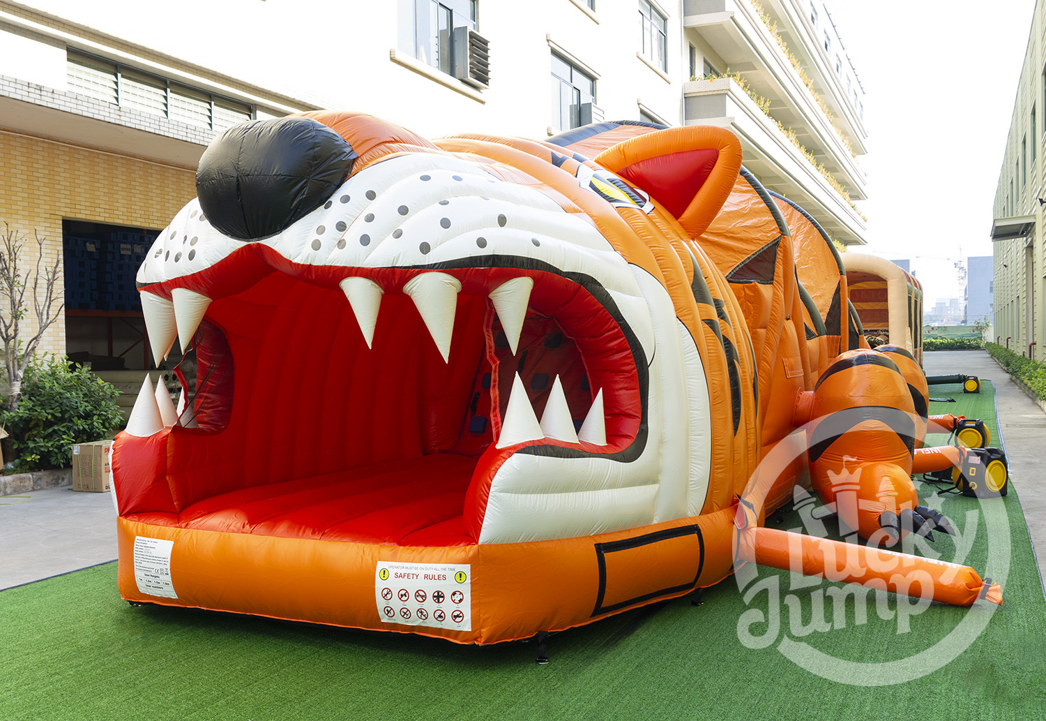 Machen Sie Ihre Veranstaltung unvergesslich mit unseremAufblasbarer Tiger Hindernis lauf, Eine energie geladene Outdoor-Attraktion für Familien veranstaltungen, Teambildung von Unternehmen und Community-Festivals. Es verbindet Spannung mit Sicherheit und bietet stundenlangen Spaß in einer lebendigen Abenteuer welt mit Tiger motiven.