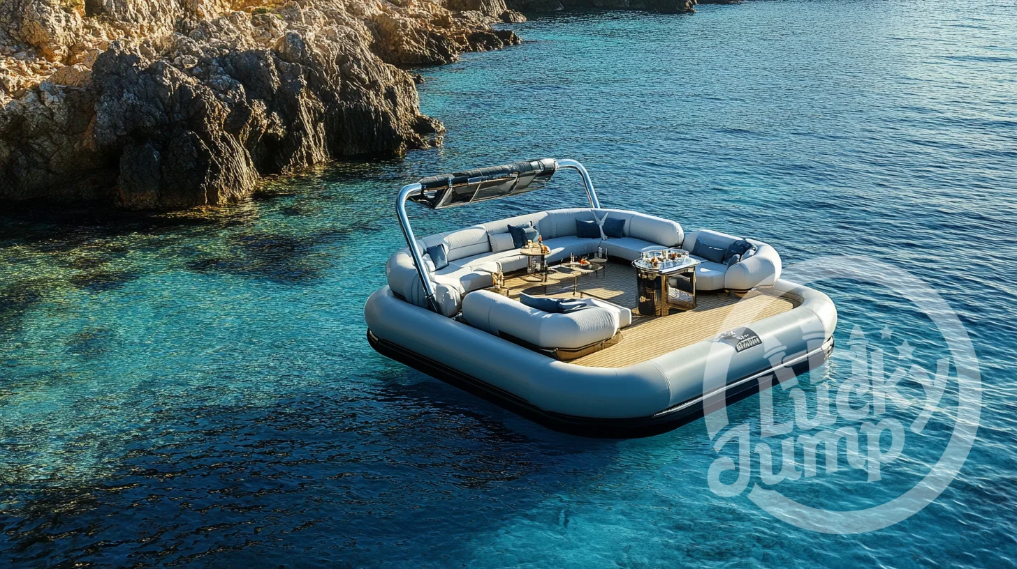 Escape into a world where luxury meets innovation on the waves. Our Inflatable Yacht Floating in Turquoise Waters offers an exquisite blend of sophistication and comfort, designed to elevate your waterborne adventures. Whether you're planning a serene getaway or an elegant party at sea, our luxurious inflatable yacht provides the perfect setting.