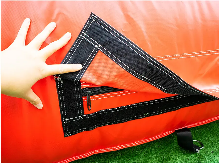 All product we sew with inside safety flap, in case over off when using, it can avoid the air flow out quickly, ave ough time for the player to escape.