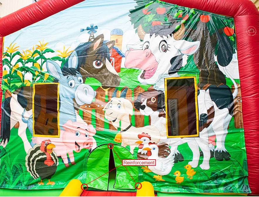 Worried about children possibly out of a bouncer? Don't be. We got 3 points of reinforcement on the en-trance of the bouncer which make the entrance very strong. Also we add the step outside the entrance fol-lowing the AU and USA standards of jumping castle.