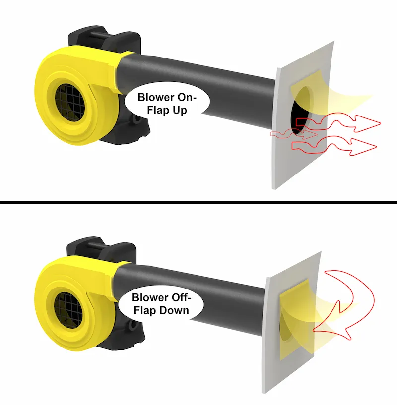 Not just fit and finish, Pango make a second blower tube and hide it if not use. We make the two tubes on different of the bouncer so that could fit the power loca-tion. We want to make sure clients could use the bouncer.